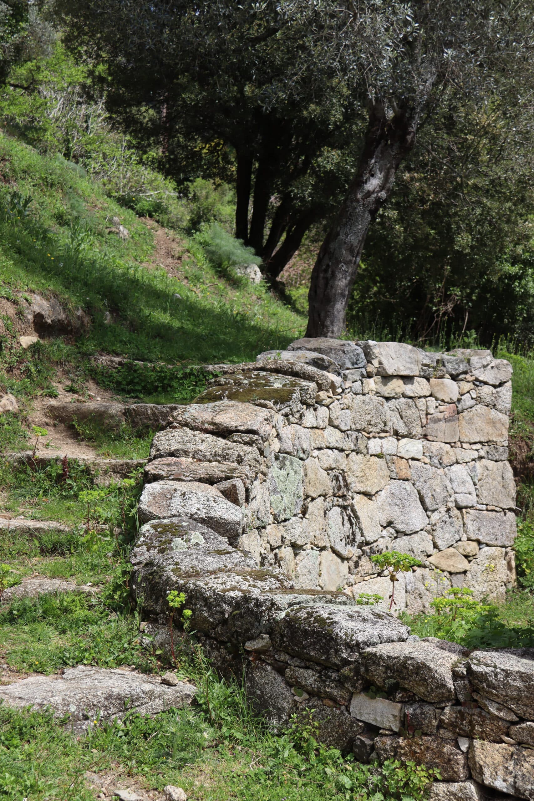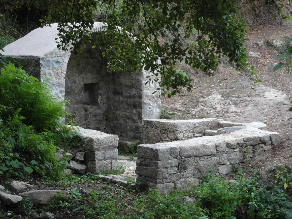 Unterwegs sehen Sie, wie das Wasser am Brunnen von Saint-André aufgefangen, dann nacheinander für das Waschhaus, in dem die Dorfbewohnerinnen ihre Wäsche wuschen, und schließlich für den Antrieb des Mühlrads verwendet wurde. Dieses System ist ein gutes Beispiel für die traditionelle Wasserwirtschaft in den korsischen Dörfern.