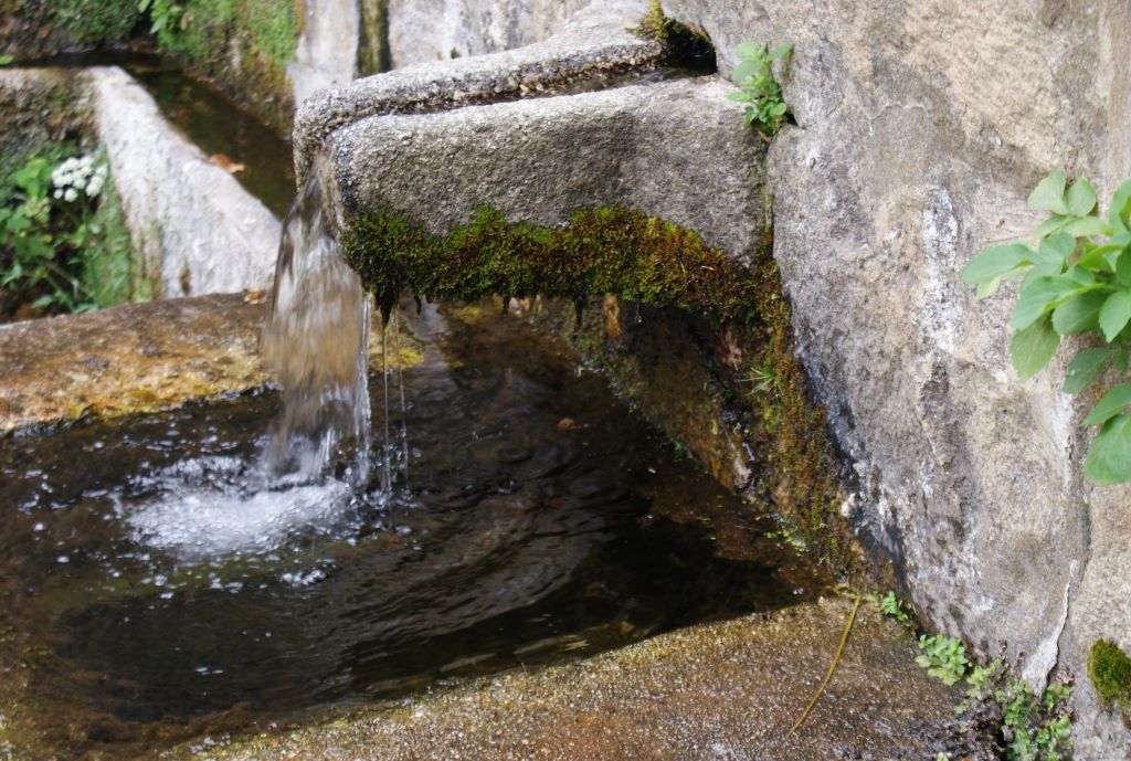 Gehen Sie in das Dorf hinein, der Pfad verläuft unterhalb des Dorfes.