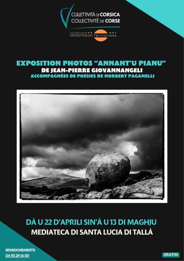 Annant'u Pianu« photo exhibition by Jean-Pierre Giovannangeli, accompanied by poetry by Norbert Paganelli, an artistic immersion in Corsican landscapes and poetic emotion.